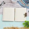 vintage handmade leather journal. Crafted with genuine leather, it radiates authenticity and charm, perfect for those who appreciate classic craftsmanship. The premium antique lock closure adds a touch of elegance and security, ensuring your thoughts and memories are safeguarded within its pages. Inside, you’ll discover 200 brown handmade pages, providing ample space for your musings, sketches, and stories to unfold. Whether it’s for journaling, sketching, or planning, this versatile journal is a timeless companion for your creative endeavors. Treat yourself or a loved one to this exquisite piece, a celebration of tradition and creativity