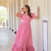 Women's Cotton Floral Printed Ruffle Anarkali Gown Dress (Pink)Women’s Cotton Floral Printed Ruffle Anarkali Gown Dress (Pink)