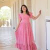 Women's Cotton Floral Printed Ruffle Anarkali Gown Dress (Pink)Women’s Cotton Floral Printed Ruffle Anarkali Gown Dress (Pink)