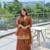 Women’s Chinon Silk Heavy Embroidery Straight Kurta With Sharara and Dupatta set